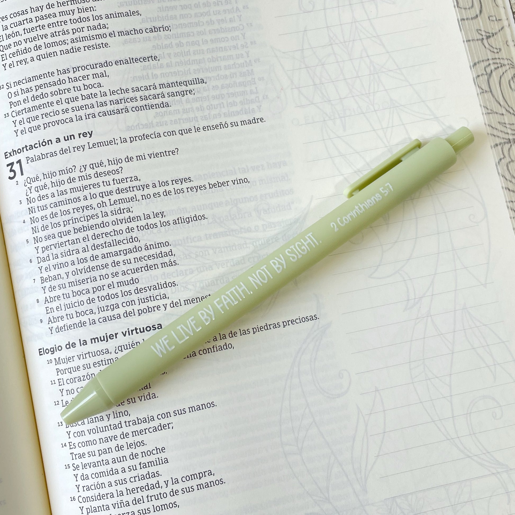 Bello lapicero de tinta negra retráctil súper suave al escribir. Con hermoso mensaje inspirado en palabra de Dios.