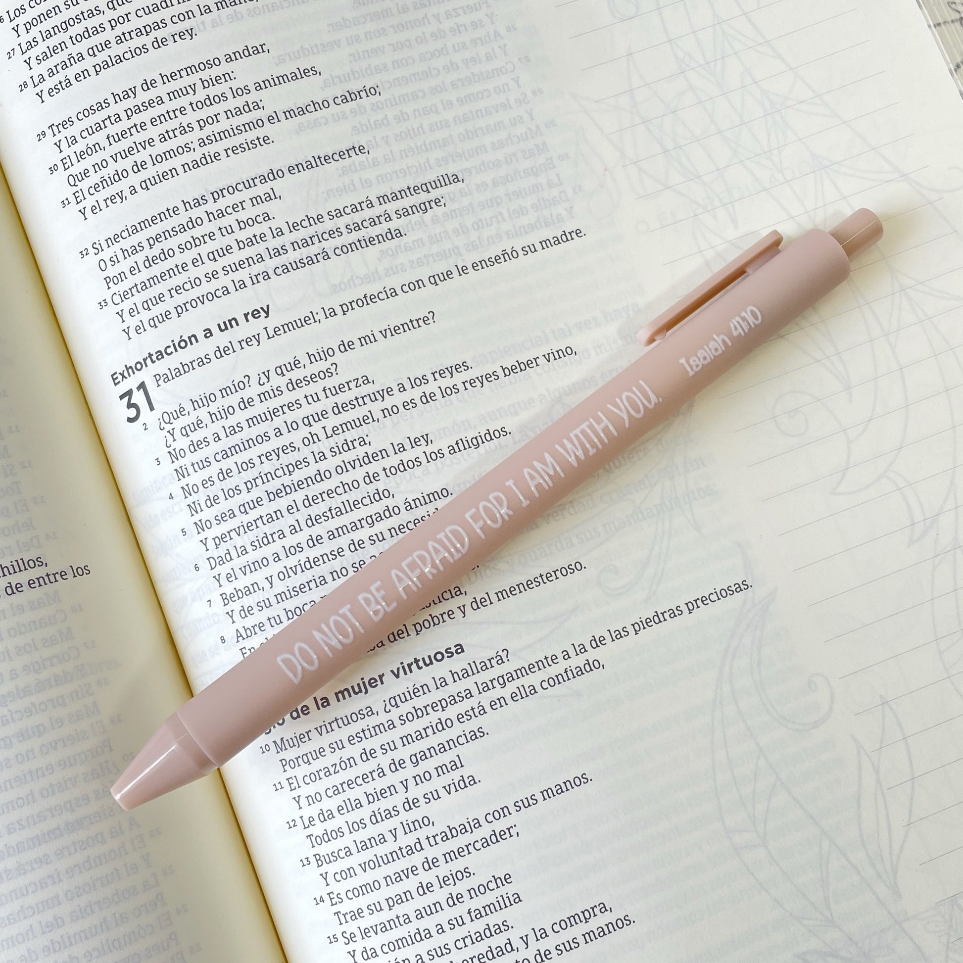 Bello lapicero de tinta negra retráctil súper suave al escribir. Con hermoso mensaje inspirado en palabra de Dios.
