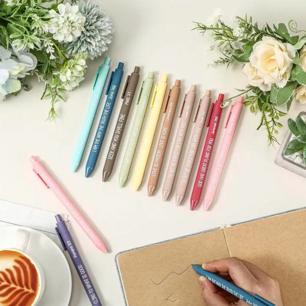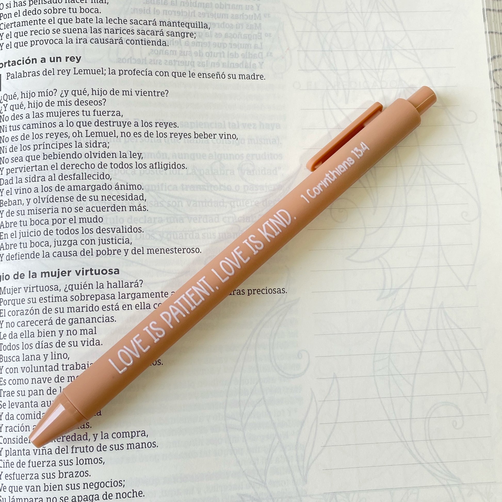 Bello lapicero de tinta negra retráctil súper suave al escribir. Con hermoso mensaje inspirado en palabra de Dios.
