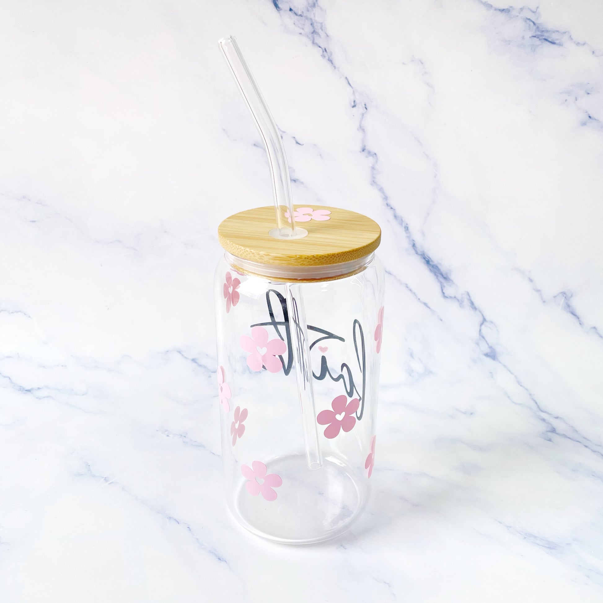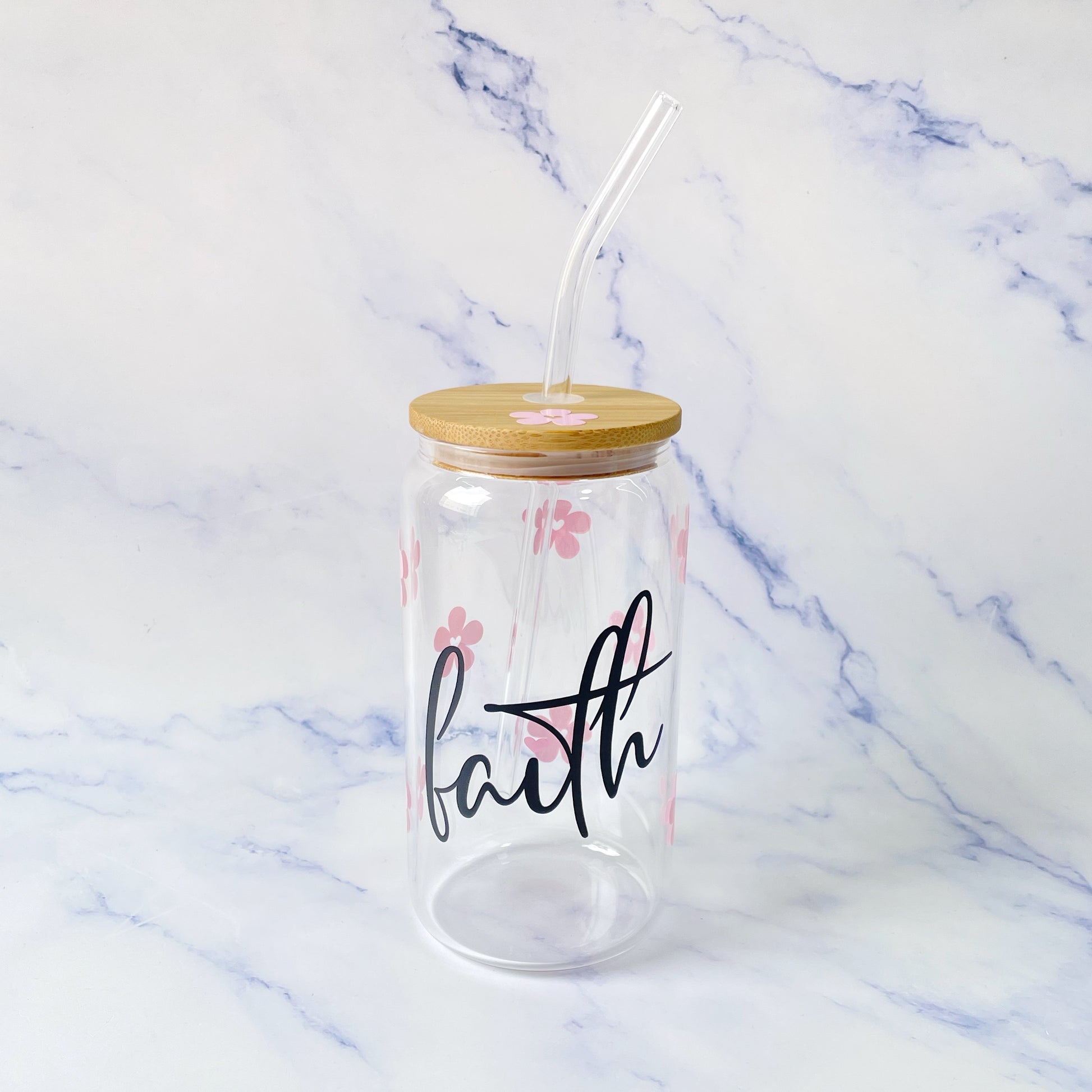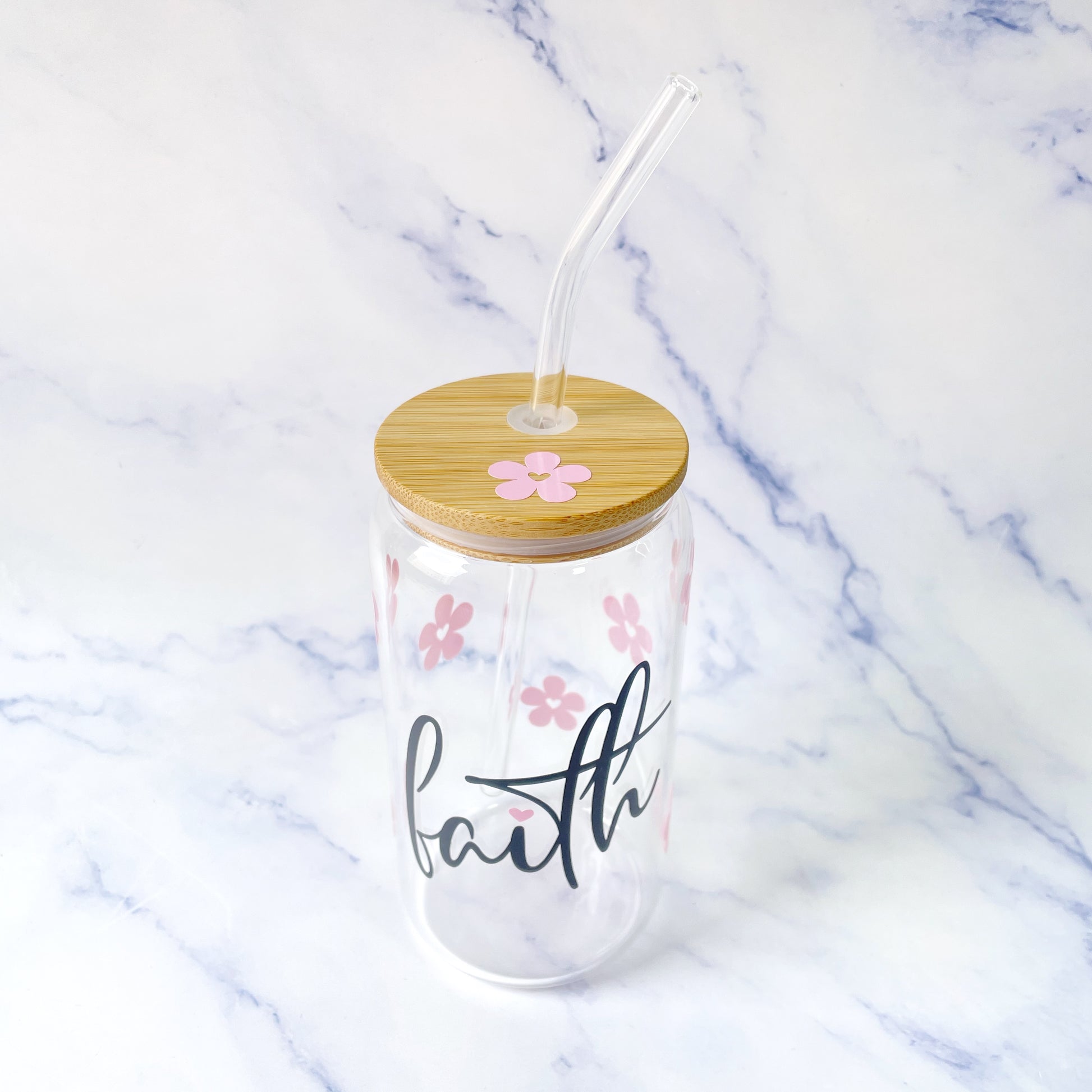 Lleva el mensaje de una manera diferente a todos lados mientras tomas tu bebida preferida con este hermoso Jar de Bambú con el mensaje Faith! Un detallito en forma de corazón y flores alrededor.