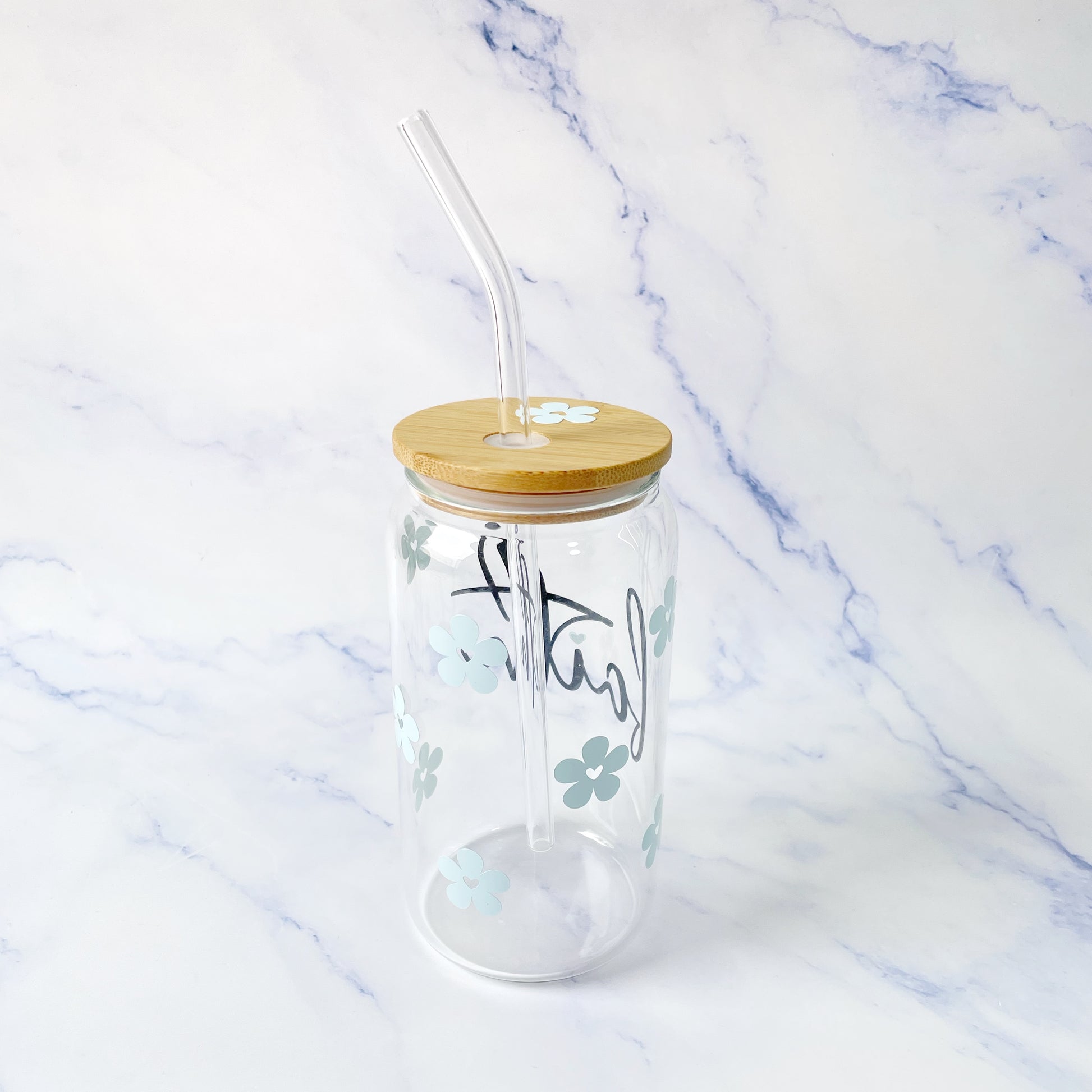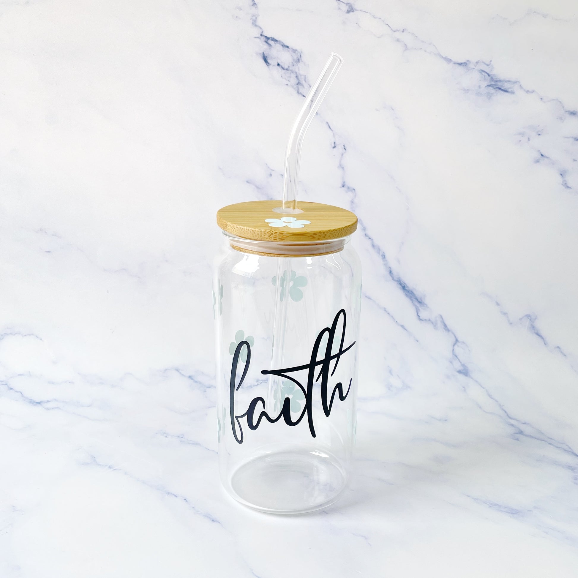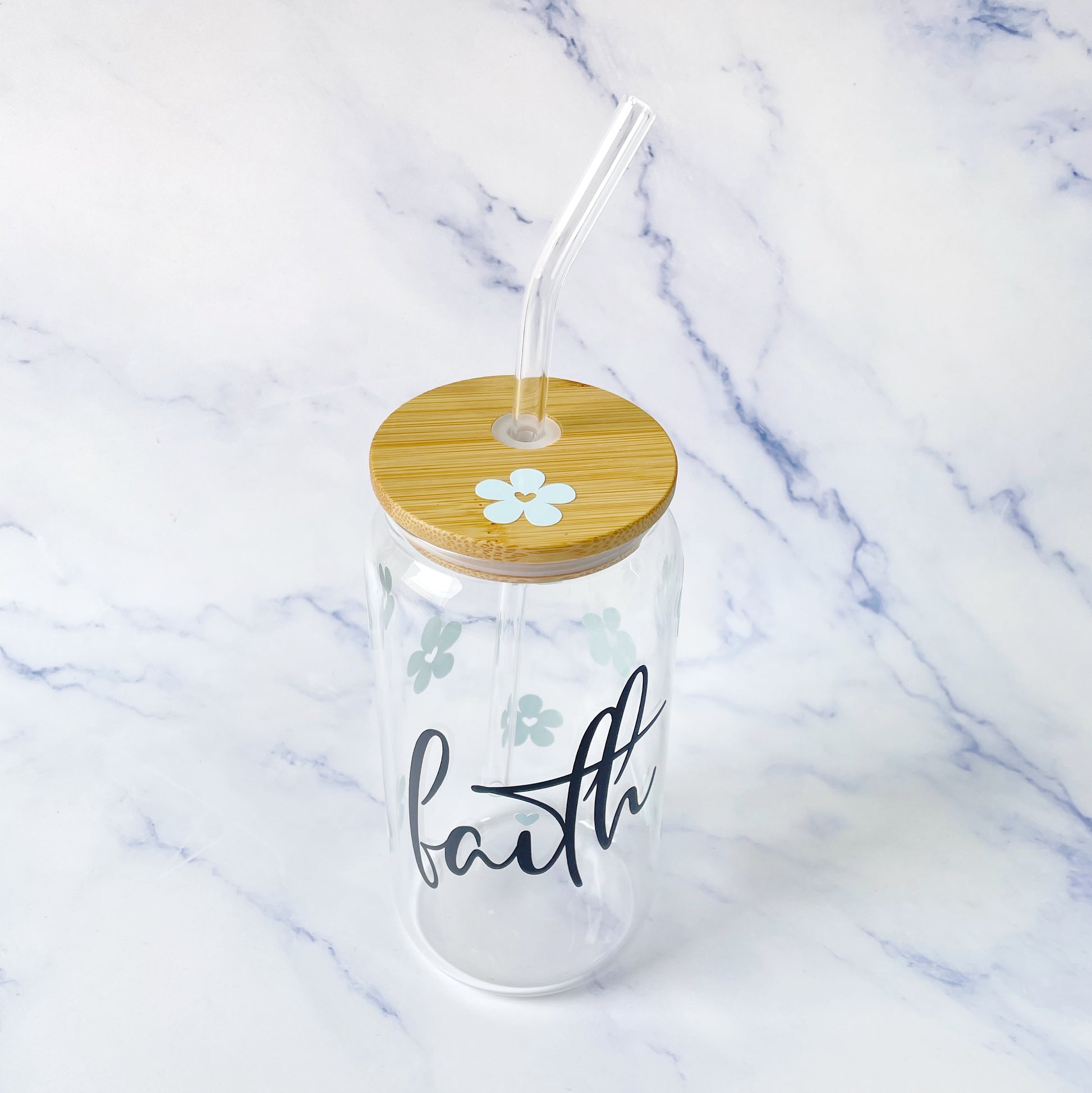 Lleva el mensaje de una manera diferente a todos lados mientras tomas tu bebida preferida con este hermoso Jar de Bambú con el mensaje Faith! Un detallito en forma de corazón y flores alrededor.