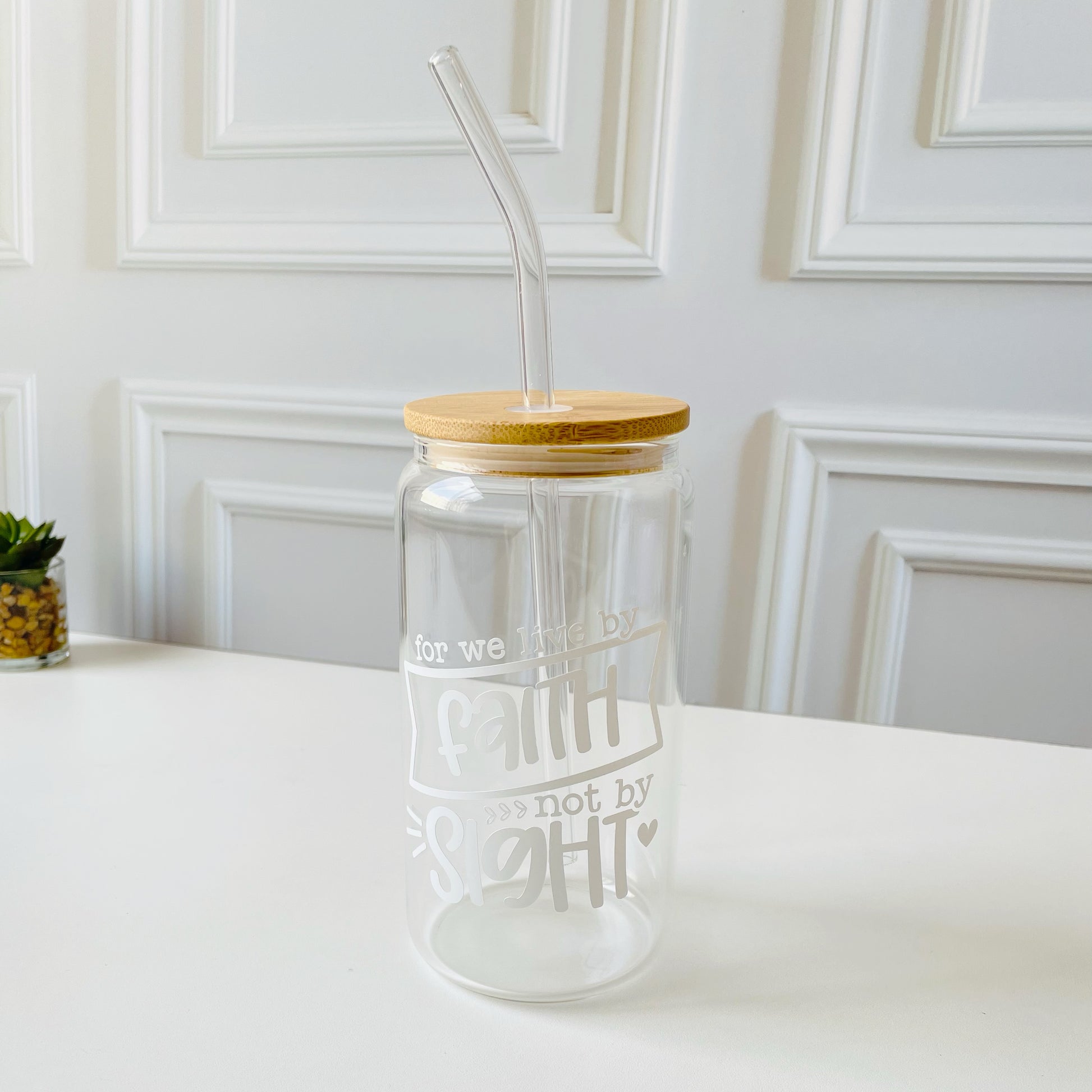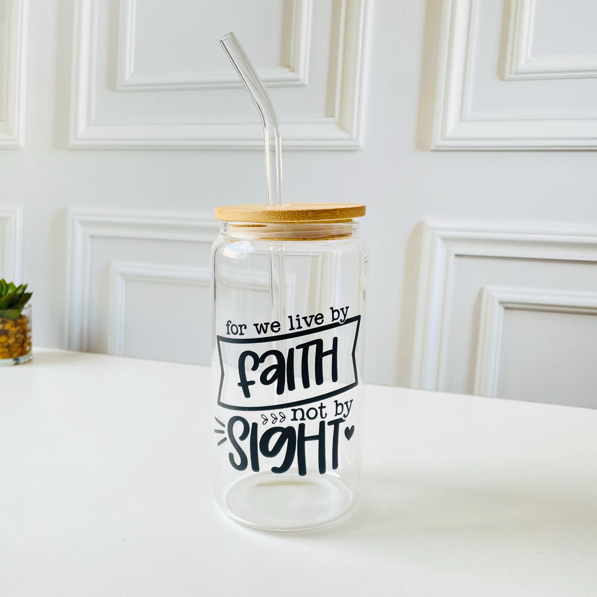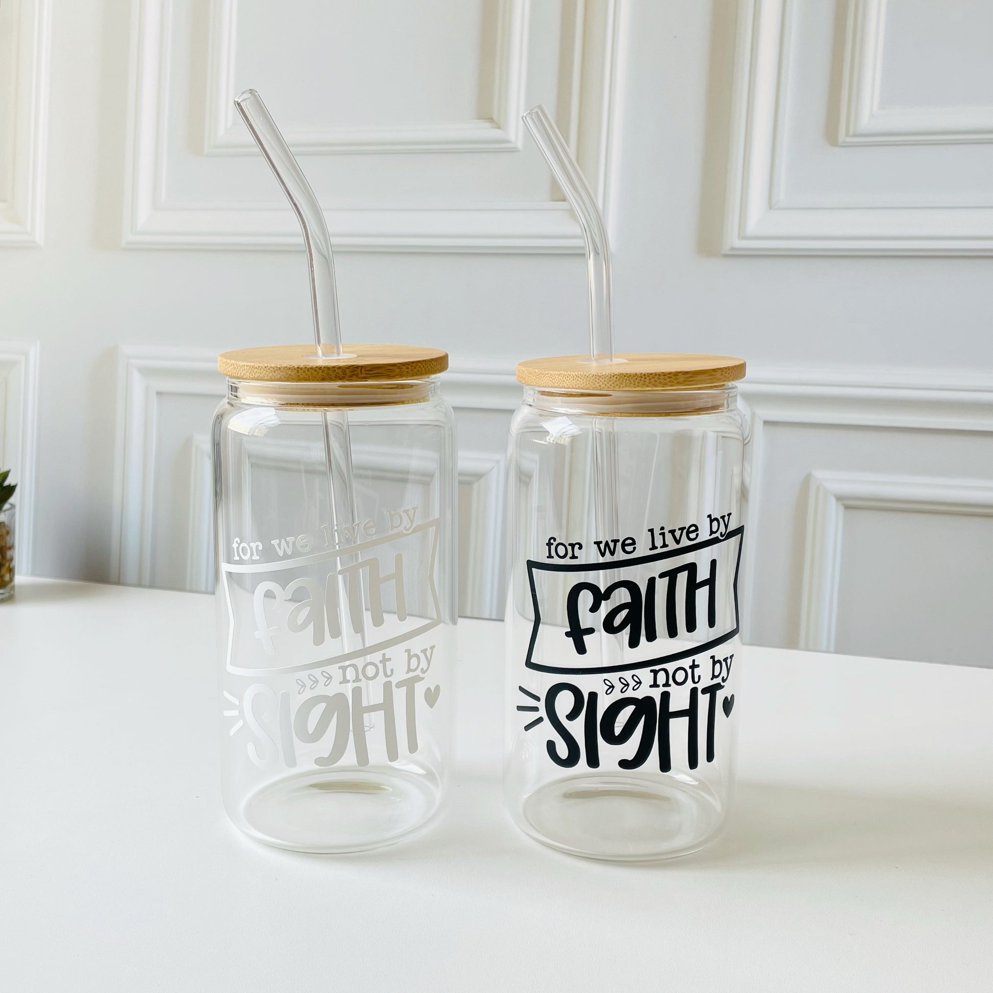 Lleva el mensaje de una manera diferente a todos lados mientras tomas tu bebida preferida con este hermoso Jar de Bambú con el mensaje vivir por fe y no por vista! En colores clásicos blanco y negro 😍