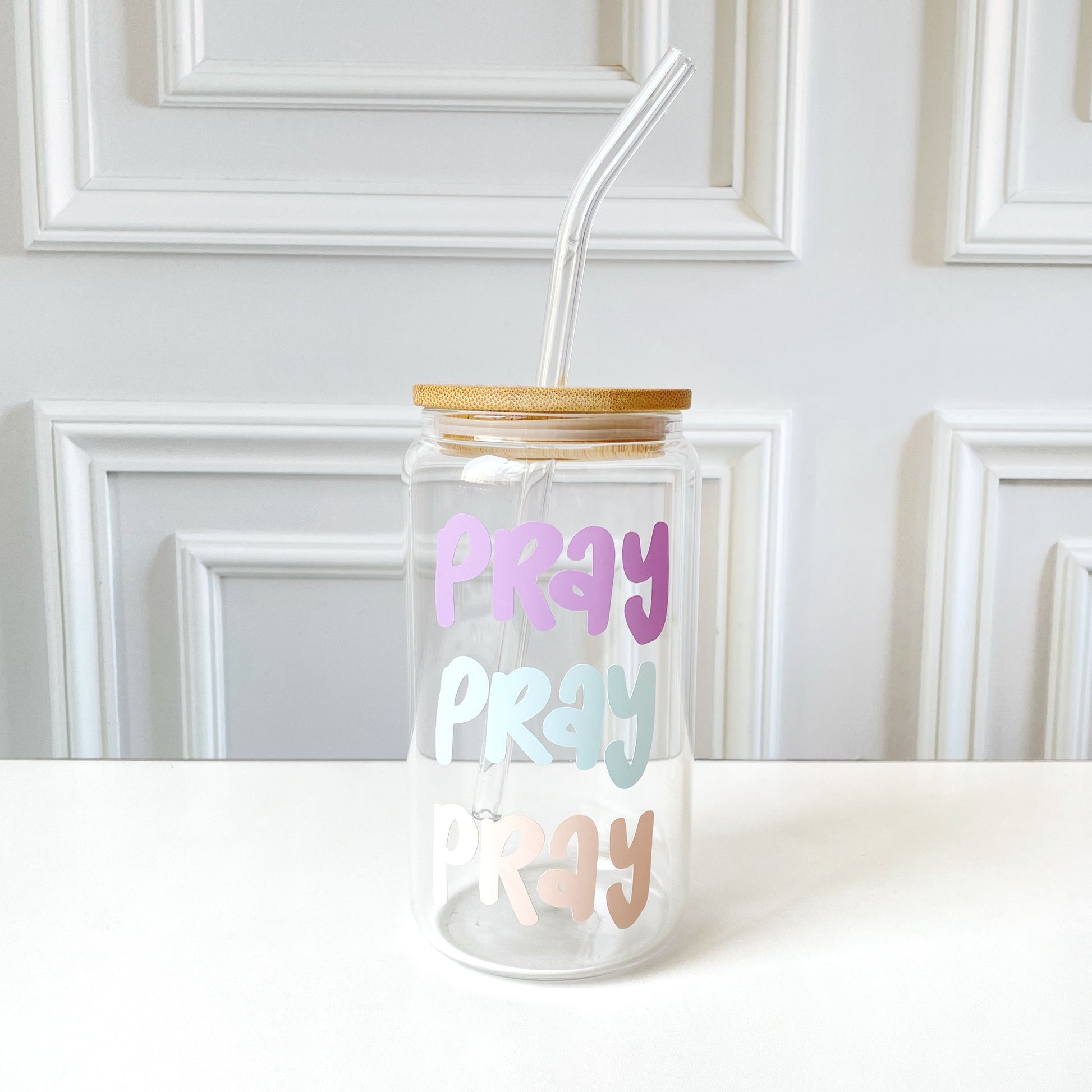 Lleva el mensaje de una manera diferente a todos lados mientras tomas tu bebida preferida con este hermoso Jar de Bambú con el mensaje Pray! En colores pasteles 😍