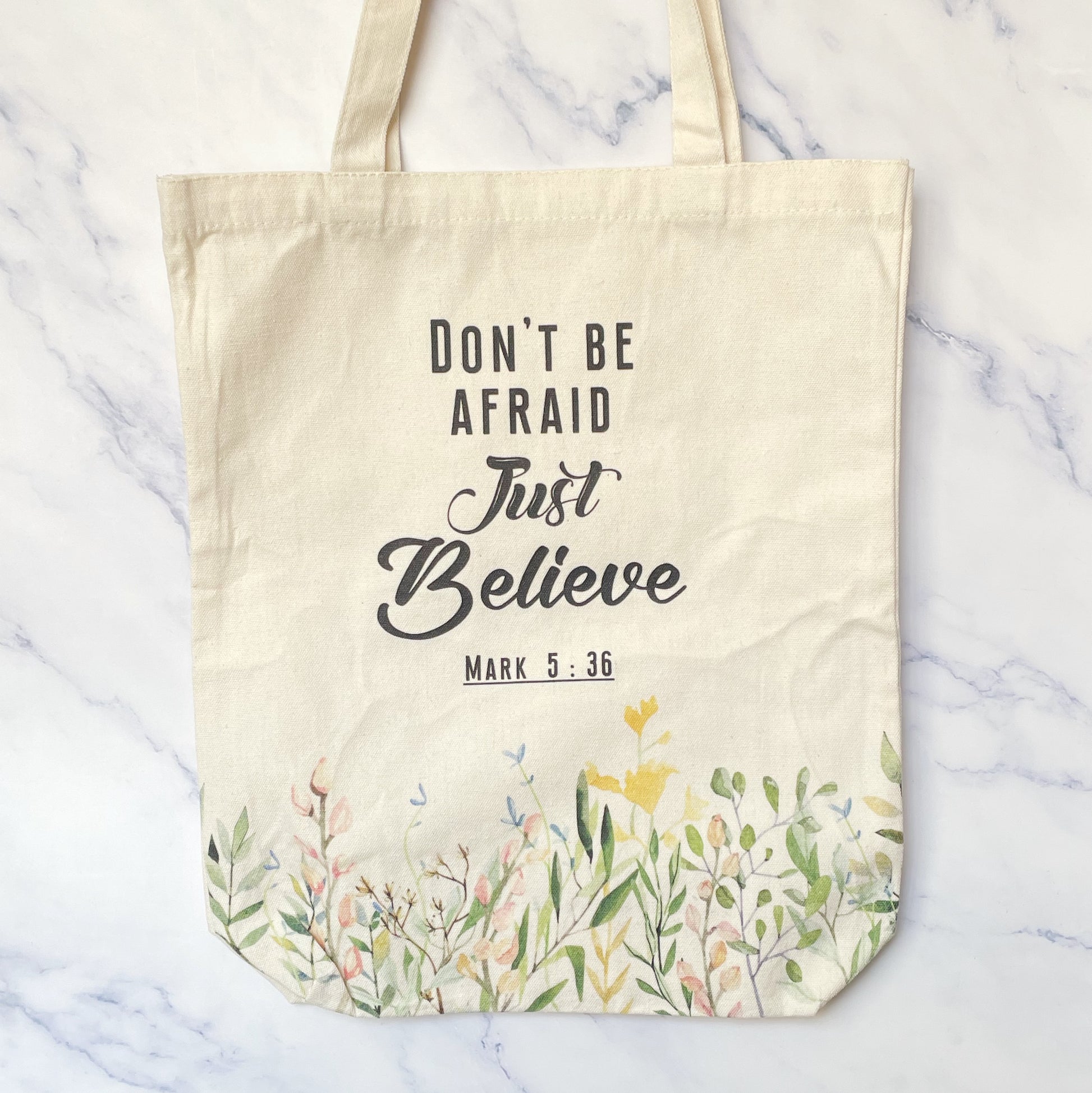 Totebag: Don't be afraid just believe inspirado en Marcos 5:36