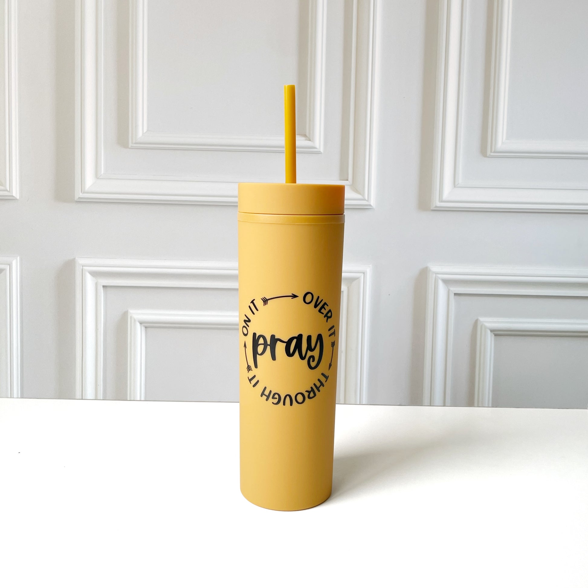 Hermosos tumblers en estos colores neutros, con mensaje directo: Pray on it, over it, through it🙏🏻. Lleva el mensaje de una manera diferente y habla del amor de Dios y lo que hizo en tu vida. 🫶🏼