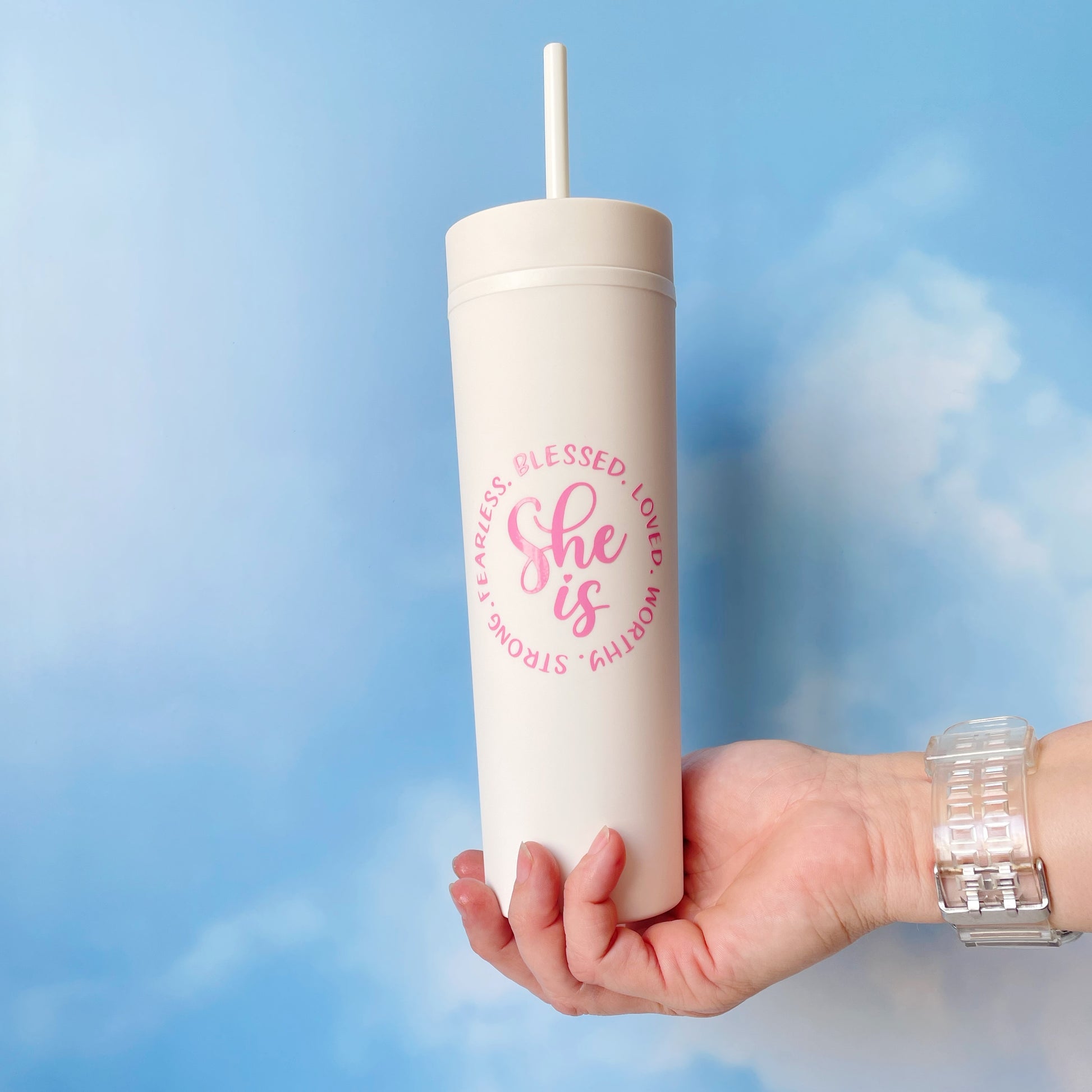 Lleva el mensaje de una manera diferente, y que más con este tumbler inspirado en Proverbios 31 sobre la mujer virtuosa.
